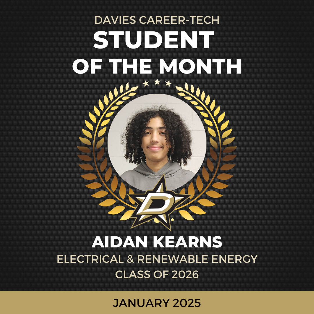 We’re excited to announce that Aidan Kearns has been selected as Davies's December Student of the Month! He received a Davies drawstring bag, a gift card, a Davies Student of the Month t-shirt, and some additional treats. Furthermore, Aidan is Davies's nominee for the Providence Journal's Student of the Week contest for the week of January 27th.
